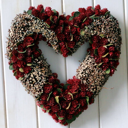 【Xmasリース】【クリスマスリース】【ドライフラワー】ローズスティック ハートリース(M)